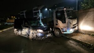 İstanbul’da park halindeki tıra çarpan otomobilin sürücüsü, aracını olduğu gibi bırakıp olay yerinden kaçtı.